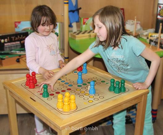 Auch Gesellschaftsspiele aus Holz und Leder fertigt Prescher an – alles möglichst mit Stuhr-Bezug. So zum Beispiel das Spiel „Glückshaus“, das als Lederbeutel daherkommt. Wird dieser als Spielfeld ausgebreitet, so sind die Umrisse der Gemeinde Stuhr zu erkennen. Auch als Geldbörse für Kleingeld eigne sich der Beutel, so Prescher. Ein Renner – nicht nur zu Weihnachten in der Elch-Edition – sei auch das Stuhrer Eselspiel, bei dem Zahlenstapel aus Holzscheiben aufgetürmt werden müssen, berichtet Prescher aus Erfahrung.